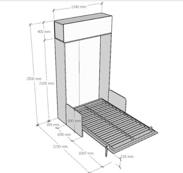 Quando chiuso occupa solamente 105 cm di profondità, consentendo di sfruttare al meglio le superfici a propria disposizione. Quando aperto invece presenta le medesime caratteristiche e comodità di un normale letto, arrivando a misurare 215 cm di pronfodità.