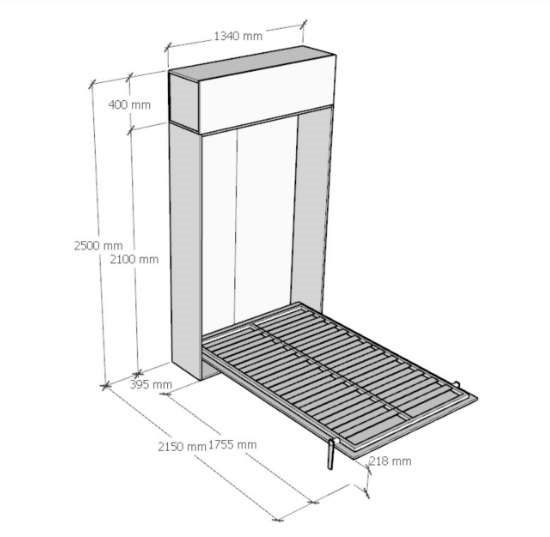 dimensione del letto chiuso: L.134 P.39.5 H.210