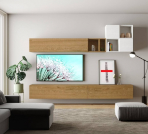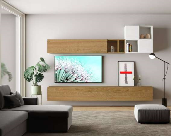 La parete attrezzata Isoka A36 ha un design sfizioso e di effetto, l’aspetto ideale per la parete in cui collocare la TV.