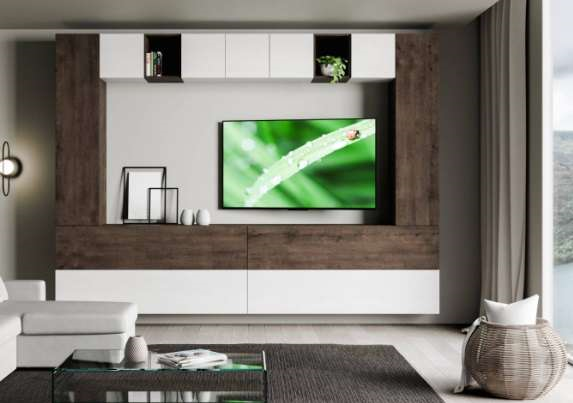 Parete soggiorno Isoka A105 L.368 H.254 P.39,5 cm
