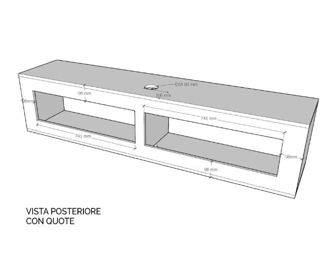 I piedini per la base a terra sono di misura cm. 6×6 H.2. Il mobile arriva smontato.