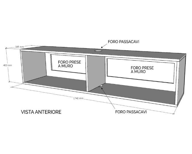 Base TV Ribalta Con Passa Cavi L.173,6 H.40 P.39,5 Con Piedini o Senza cm