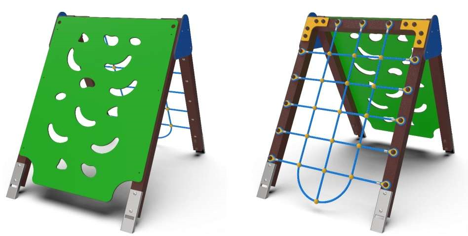 Sartia Composta da - gambe e profili orizzontali con palo 90x90mm in plastica proveniente al 100% da raccolta differenziata (certificata al 100% da IPPR) costampato - anima in metallo minimo Ø20mm con spessore 2mm). - Carpenteria e minuteria in acciaio nox, staffe per ancoraggio al terreno in acciaio zincato. - Scala a pioli con tubolari in acciaio inox Ø30mm con spessore 2mm, struttura e componenti varie in accordo alla normativa UNI EN 1176 e relative.