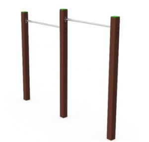 - Attrezzatura fitness per aree all'aperto, barra per trazione con doppia altezza, realizzata con barre orizzontali in acciaio inox e componenti in PEHD e profili di sezioni variabili in plastica proveniente al 100% da raccolta differenziata (certificata PSV da IIP).