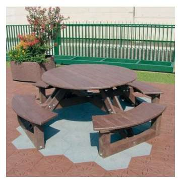 Tavolo Rotondo Con Panchine Senza Sxchienale diametro 240cm - In Plastica Riciclata