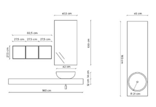 - Top scatolato in MDF rivestito e HPL H 12 x L165 x P 45 cm