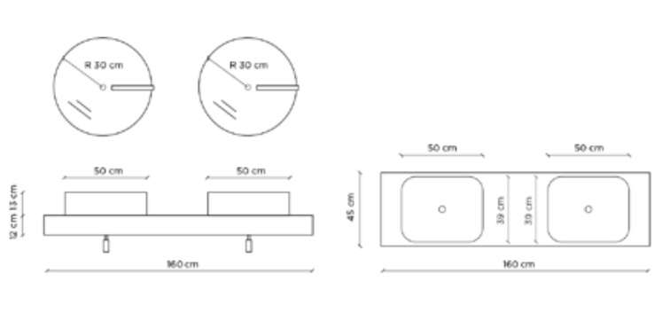 - Top sospeso scatolato in MDF rivestito e HPL H 12 x L160 x P 45 cm,