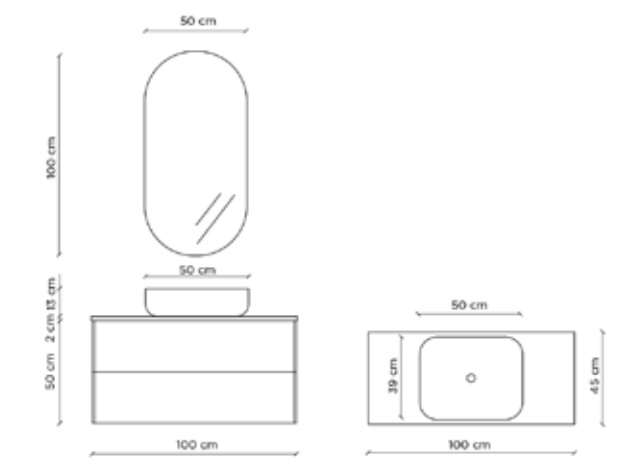 - Base sospesa in melaminico antigraffio spessore 18mm (52x100x45 cm)
