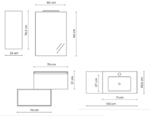 Mobile bagno completo di 5 pezzi comprensivo di tutto quello che ti occorre per arredare il tuo bagno.