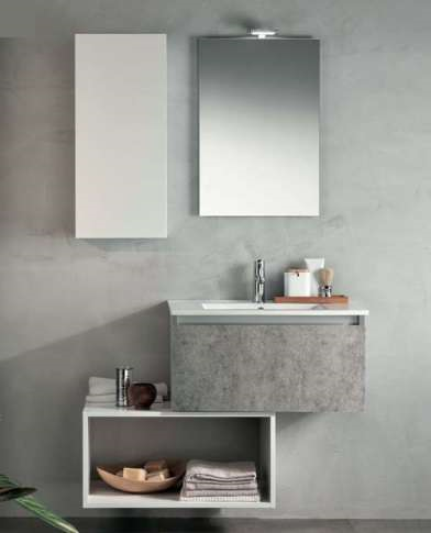 Composizione 5 Pz Arredo Bagno Modello Ibiza Colore Bianco/Cemento L 105cm