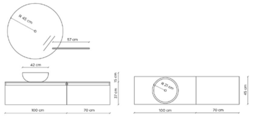 - Base sospesa in melaminico antigraffio spessore 18mm (37x100x45 cm)