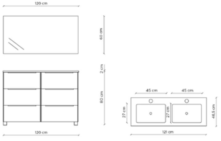 Mobile bagno completo di 6 pezzi comprensivo di tutto quello che ti occorre per arredare il tuo bagno.