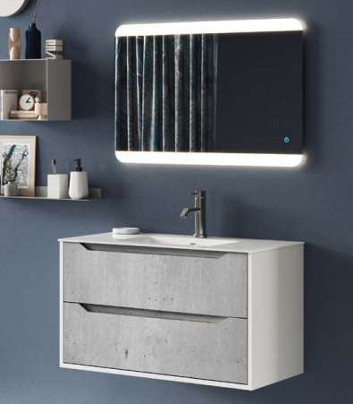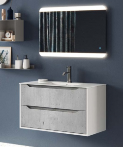 Composizione 3 Pz Arredo Bagno Modello Aqa Bianco Opaco e Cemento