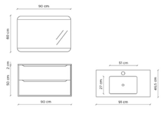 Mobile bagno completo di 3 pezzi comprensivo di tutto quello che ti occorre per arredare il tuo bagno.