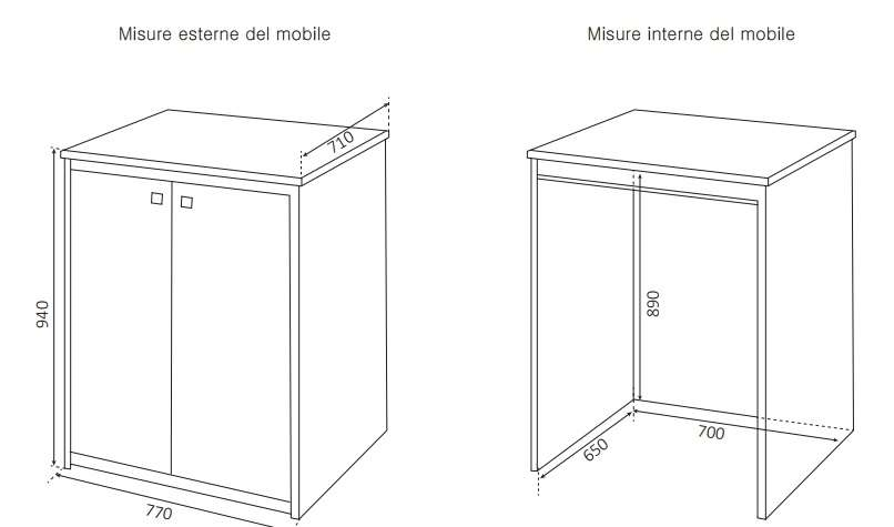 Il mobile ha dimensioni 77x71x94 cm ed è fornito in kit di montaggio.