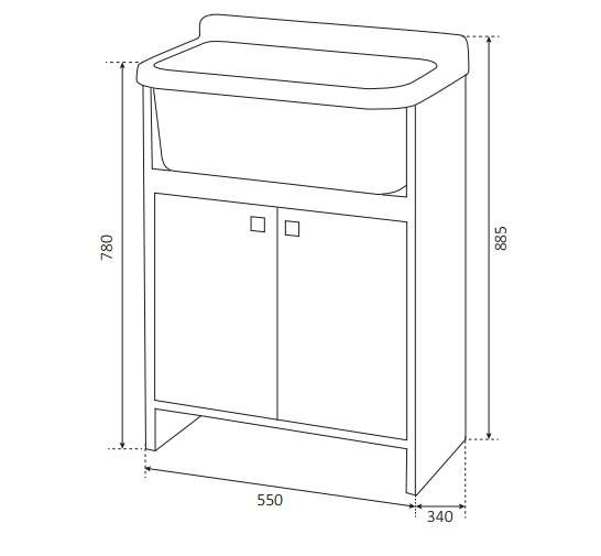Mobile Lavanderia Con Vaschetta e Due Ante Colore Bianco 55x34x80 cm