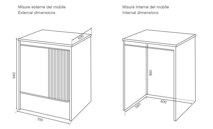 - Dimensioni esterne del mobile: 70 x 60 x h 94 cm