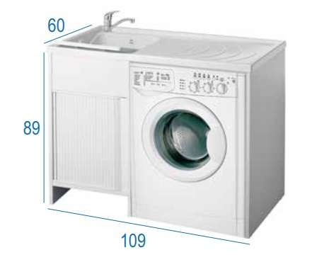Mobile Lavanderia Con Vaschetta Reversibile Chiusura a Serrandina Colore Bianco