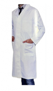 Il camice si presenta con chiusura frontale con bottoni . Due tasche laterali e una tasca sul petto.
