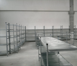 Home -> Scaffalatura industriale a ripiani lunghezza 9 metri , altezza 2,50 mt, profondità 80 cm con 5 ripiani in altezza