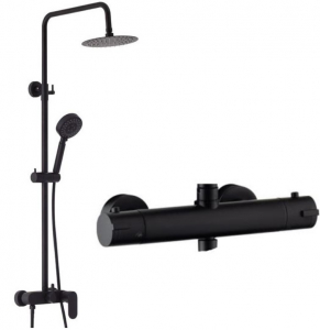 Asta Saliscendi con soffione e Doccetta Fusion Round con Miscelatore Termostatico - Finitura Nero