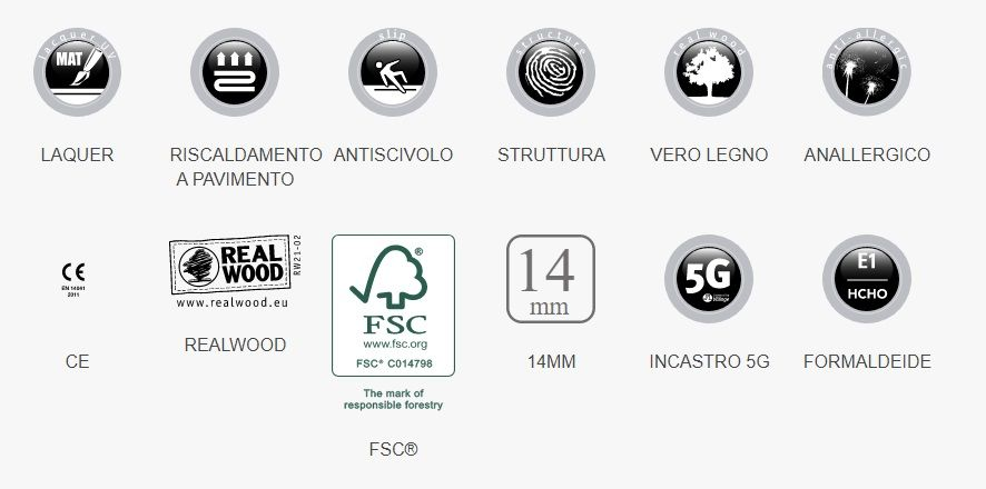 Caratteristiche tecniche: Supporto : Pino silvestro con strato superiore nobile da 2,5 mm in rovere