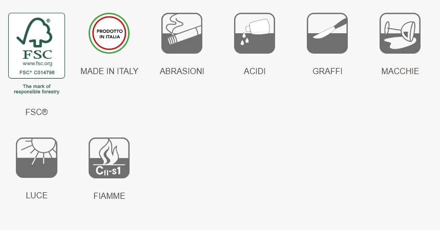 Profilo : Bordo Stondato Spessore : 28mm/38 mm Supporto : Truciolare Emissione Formaldeide : E1 (EN120)