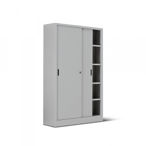 Gli armadi larghi 100 e 120 cm, altezza cm 200, hanno vano unico con 4 ripiani spostabili su cremagliera passo 25mm; gli armadi di larghezza maggiore, hanno due vani divisi da tramezza, con 4+4 ripiani spostabili.