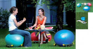 Elastic, colourful, egg-shaped seating made from high-tech rubber, resting on a stainless steel support frame. This cheerful item can be used in both indoor and outdoor environments, creating a funny and enjoyable atmosphere wherever it is used. The seating is perfectly kept in place by the stainless steel frame at the bottom which provides utmost stability