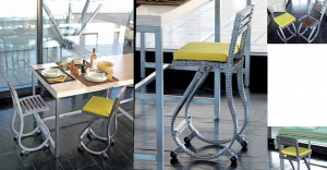 Sgabello di altezza leggermente inferiore rispetto al modello “conforTESIO”, con una seduta naturalmente ammortizzata. Elegante e moderno, si colloca perfettamente nello spazio domestico, conferendo un tocco d’originalità. È disponibile una versione con seduta e schienale in listelli di legno e, a corredo, un comodo cuscino realizzato con uno speciale tessuto antimacchia in colore giallo.