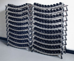 Piccola cantina dal design raffinato ed elegante. Il sistema si ottiene partendo dall’espositore da piano per poi aggiungere elementi modulari sovrapponibili, che possono ospitare fino a 100 bottiglie.