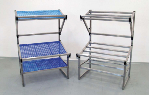 BANCARELLA FISSA IN ACCIAIO INOX CON RIPIANI IN PLASTICA L=1500 mm