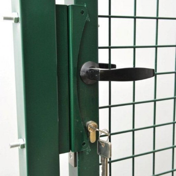 cancelletto zincato plastificato verde  cm 100x100h - Con rete saldata 50X50X4 mm - Telaio 35/40 mm-  completo di piantoni laterali quadri 60x60mm - e provvisto di maniglia  e serratura con chiave