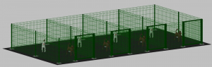 Recinto-Box Modulare per Cani in Ferro Zincato e Verniciato Verde-con Pali a Tassellare - cm 200x400x142h(per 4 box)