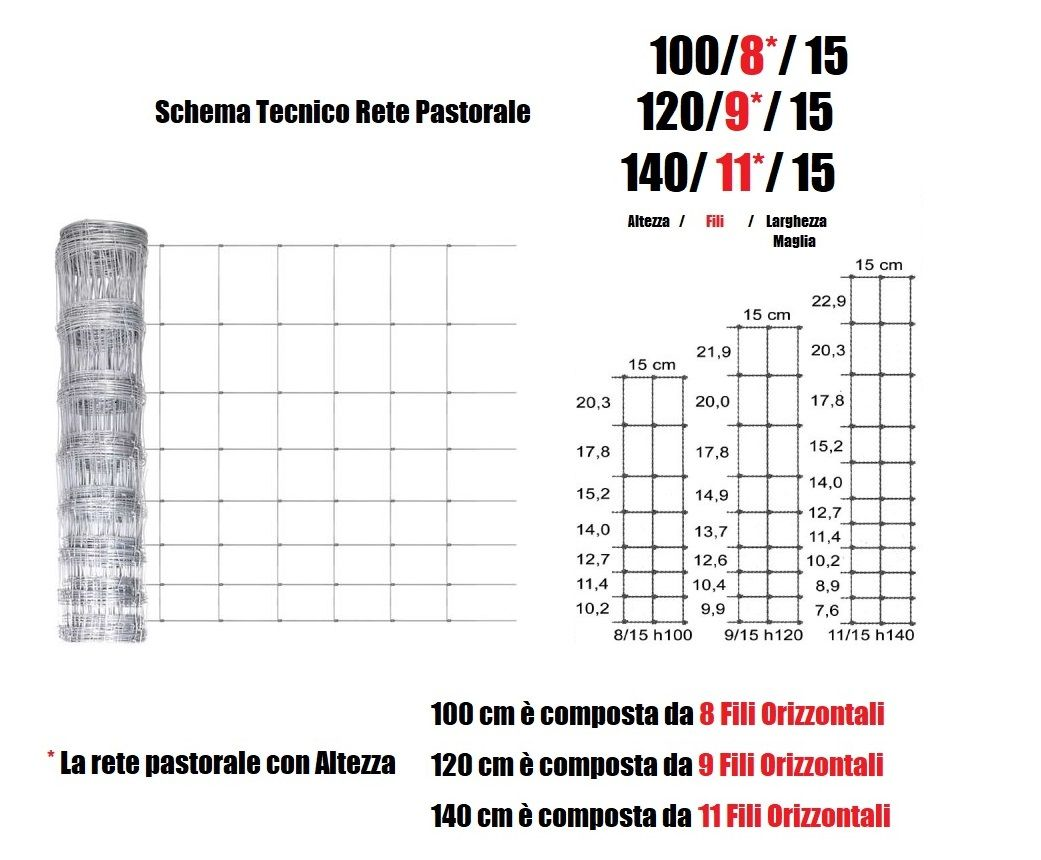 CONSEGNA 4/5 Giorni - MAGLIA: 8/15 -DIAMETRO FILO:mm2,5/3,0 - ALTEZZA RETE: 100 cm- rete metallica realizzata annodando il filo verticale su quello orizzontale. I fili verticali ed orizzontali della rete sono in acciaio a forte zincatura. L'impiego è rivolto alla recinzione di grandi aree ad uso agricolo e zootecnico. E' considerata una tra le reti più econimiche di tutta la gamma.
