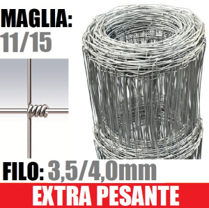 MAGLIA: 11/15 -DIAMETRO FILO:mm3,5/4,0 - ALTEZZA RETE: 140 cm- rete metallica realizzata annodando il filo verticale su quello orizzontale. I fili verticali ed orizzontali della rete sono in acciaio a forte zincatura. L'impiego è rivolto alla recinzione di grandi aree ad uso agricolo e zootecnico. E' considerata una tra le reti più econimiche di tutta la gamma.