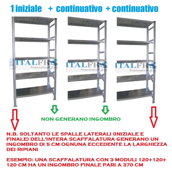I vantaggi del prodotto MADE IN ITALY : - Velocità e semplicità di assemblaggio (COMPLETAMENTE AD INCASTRO) - Prodotto versatile , utile per svariate esigenze , principalmente per il magazzino e l'industria - Prodotto in ACCIAIO ZINCATO alto resistenziale certificato 3.1B secondo le norme EN10204 - Merce fornita con manuale di montaggio - Risolve la vere esigenze del mercato : STABILITA' COSTO E PORTATA - DISPONIBILE PRESSO LA NOSTRA AZIENDA SEMPRE IN QUANTITA' ELEVATE e IN PRONTA CONSEGNA - CONSEGNA IN 24 / 48 ORE