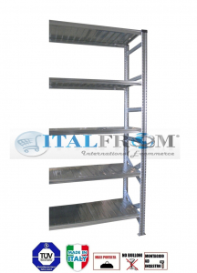 z MODULO CONTINUATIVO- scaffalatura da magazzino zincata H 300 cm , L 90 cm , PROF.80 cm , con 5 ripiani ,PORTATA OGNUNO 230 Kg