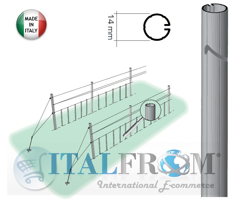 SPESS: 0,5 mm - Il tutore da 14mm viene impiegato per vigneti impianti a spalliera in sostituzione ai comuni tondini in ferro. -Prodotto made in Italy - PER ALTEZZE PERSONALIZZATE RICHIEDI UN PREVENTIVO . Il tutore oltre che essere fondamentale per il sostegno della vite ha anche una fondamentale importanza per la resistenza agli urti delle macchine che lavorano nel sottofila. Il trasporto e la posa in opera sono rese semplici e veloci. Fornibile a richiesta in vari spessori. I Pali e i tutori in Metallo hanno ormai preso piede nella viticoltura moderna quale validi sostituti ai più tradizionali pali in Legno e pali in cemento. La facile manualità dei Pali e tutori in Metallo permette anche negli impianti più impervi, la realizzazione di un Vigneto che rispecchia i più alti standard qualitativi. I sostegni metallici rappresentano una soluzione adeguata, perchè associano ad un limitato ingombro un'ottima resistenza. TUTORI PREZINCATO I tutori prezincati si caratterizzano per una buona durata nel tempo e per la loro economicità nei confronti degli altri profilati.