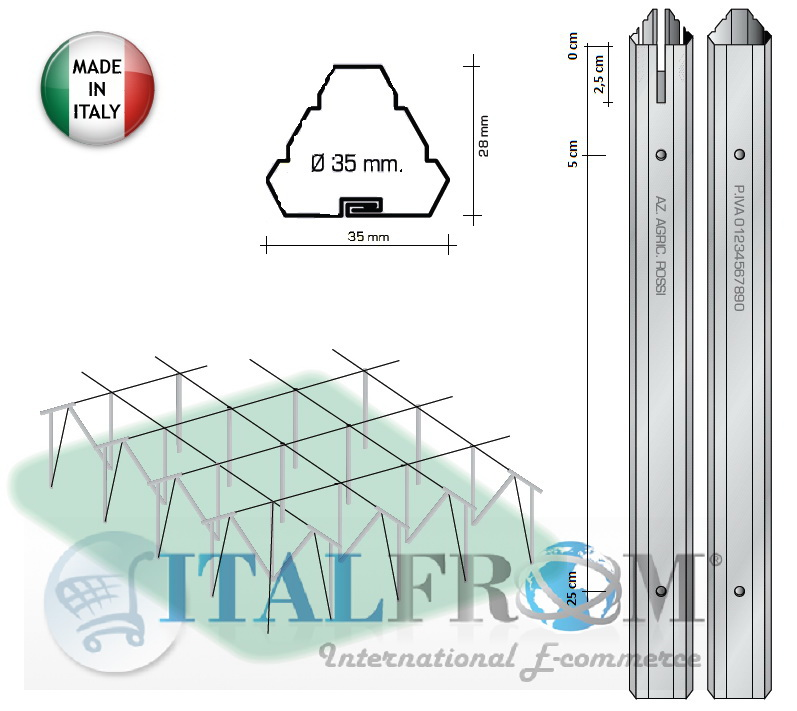 € 176.20+ IVA -SPESS: 0,6 mm -PESO: Kg1,04- il Palo Piccolo da 35mm , data la sua economicità, viene usato come tutore per barbatelle o come palo di sostegno per impianti di vigneti a tendone -Viene fornito su richiesta con o senza asole in base allle esigenze del cliente. Prodotto made in Italy - PER ALTEZZE PERSONALIZZATE RICHIEDI UN PREVENTIVO . n.b.Sul palo si puo incidere il nome, cognome dell' acquirente o la P.IVA della socetà. Servizio offerto su richiesta per ordini superiori a 5000 pz I nostri prodotti sono realizzati con materie prime di qualità e di origine italiana. Il Palo in Metallo ha ormai preso piede nella viticoltura moderna quale valido sostituto ai più tradizionali pali in Legno e pali in cemento. La facile manualità del Palo in Metallo permette anche negli impianti più impervi, la realizzazione di un Vigneto che rispecchia i più alti standard qualitativi. I sostegni metallici rappresentano una soluzione adeguata, perchè associano ad un limitato ingombro un'ottima resistenza. PALO PREZINCATO Il palo prezincato si caratterizzano per una buona durata nel tempo e per la loro economicità nei confronti degli altri profilati.