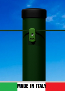 Palo completo di passafili pvc per passaggio fili di tensione e tappo superiore-Paletto Made in italy ferro zincato plastificato PZF : zincato a caldo+fosfatato+poliestere -verde ral 6005
