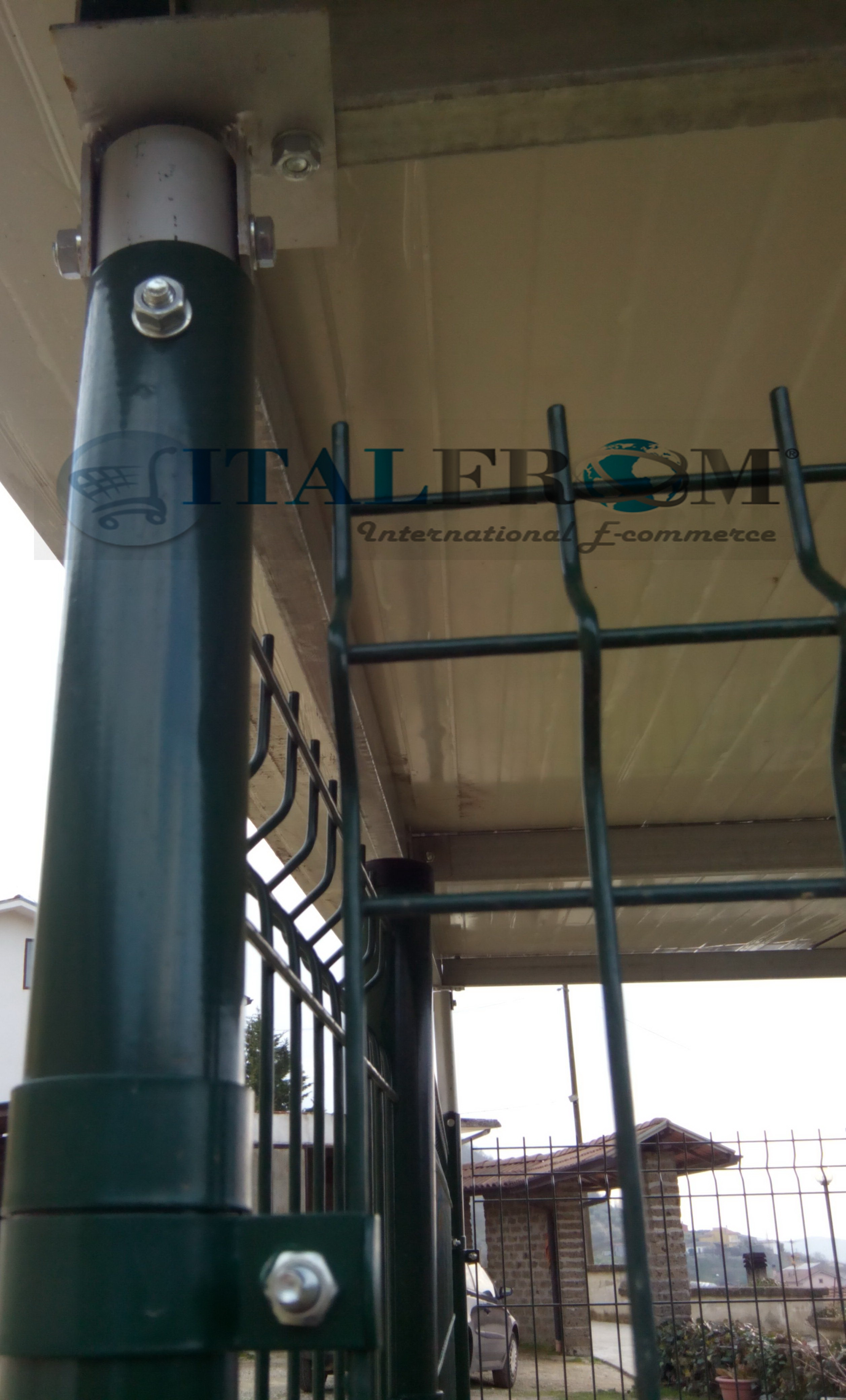 Recinto con pali a interrare - completo di cancello con serratura- Montaggio pratico e veloce-Recinto modulare con struttura interamente in acciao zincato e verniciato con tetto modulare in lamiera coibentata 4mm fornito con appositi innesti zincati e bulloneria tutta inclusa - Il recinto zincato a caldo e verniciato con polveri poliestere colore verde ral 6005 - Queste finiture danno al proddotto una qualità indiscussa per durare nel tempo senza subire alcun tipo di cambiamento- tutti i componenti del recinto sono 100% made in italy
