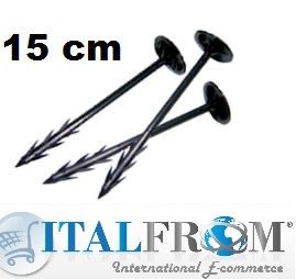 Consigliato per terreni morbidi - Chiodo in plastica utilizzato per il fissaggio il telo da pacciamatura al terreno. E’ costituito da una testa piatta di Ø 48 mm e uno stelo a croce di Ø 8 mm. E’ inoltre dotato di alette nella parte finale della punta, per evitarne la fuoriuscita dello stesso dal terreno. Si pianta nel terreno con un semplice martello.