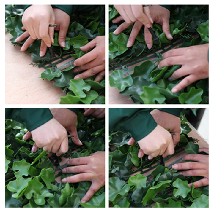 Fissare le piastrelle di siepe finta mediante fascette o filo di legatura