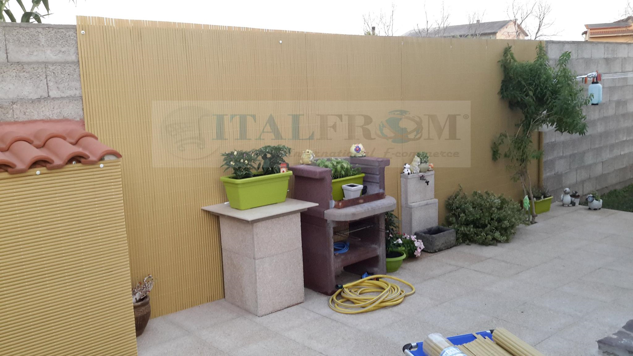 Arella in cannette in PVC singolo - colore verde - legate tra loto con filo in nylon; Dimensioni diposnibili: rotoli da 3 mt x h 1mt - h 1.50 mt - h 2 mt