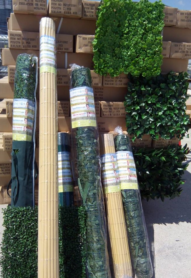 Retro con anima in plastica rigida - ideale per usi esterni ed interni. Con sistema anticaduta foglie cucite singolarmente-Tiene lontano occhi indiscreti e non attira insetti. E' trattata per resistere ai raggi UV e conserva, il suo colore originale resistendo a qualsiasi intemperie.