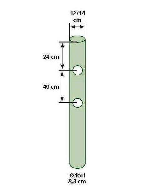 Piantato 40/50 cm. nel terreno consente poi l'inserimento di due pali tondi di ø 80 mm.