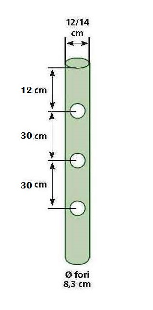 PALO TONDO ø 12 CON 3 FORI ø 8