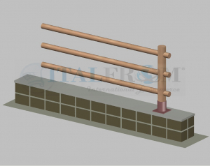 STACCIONATA CON PALI A TASSELLARE CON SUPPORTO - Staccionata composta con pali di legno di pino nordico impregnato di III classe in autoclave (elementi vericali Diamtero 12cm) (elementi orizzontali Diametro 8cm) + supporto zincato per tassellare