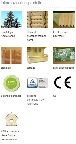 La casetta deve essere installata su una base stabile e indeformabile, in un luogo sopraelevato, che permetta il drenaggio dell’acqua piovana. Al riparo dagli spruzzi dell’eventuale impianto di irrigazione. A dovuta distanza di siepi verdi che impediscano la naturale traspirazione del legno. Normalmente la casetta viene consegnata con un mezzo pesante; se l’imballo è integro la casetta può rimanere all’esterno qualche giorno; (massimo una settimana) a condizione che sia poggiata su una base perfettamente in piano. Prima di iniziare il montaggio, leggere attentamente le istruzioni di montaggio; Per garantire lunga vita alla vostra casetta è consigliabile, prima di iniziare il montaggio, applicare una mano di impregnante (trasparente o molto chiaro) su tutte le tavole e i listelli che la compongono.